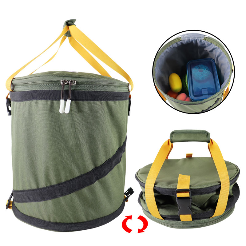 可折疊保溫冰包 圓桶保溫壺炊具收納包 燒烤爐收納包 可擴容冰包